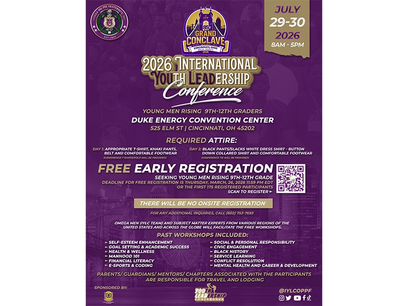 The International Youth Leadership Conference (IYLC) is one of Omega Psi Phi’s Flagship youth events that always “kick-off” the Grand Conclave of the Omega Psi Phi Fraternity, Incorporated.